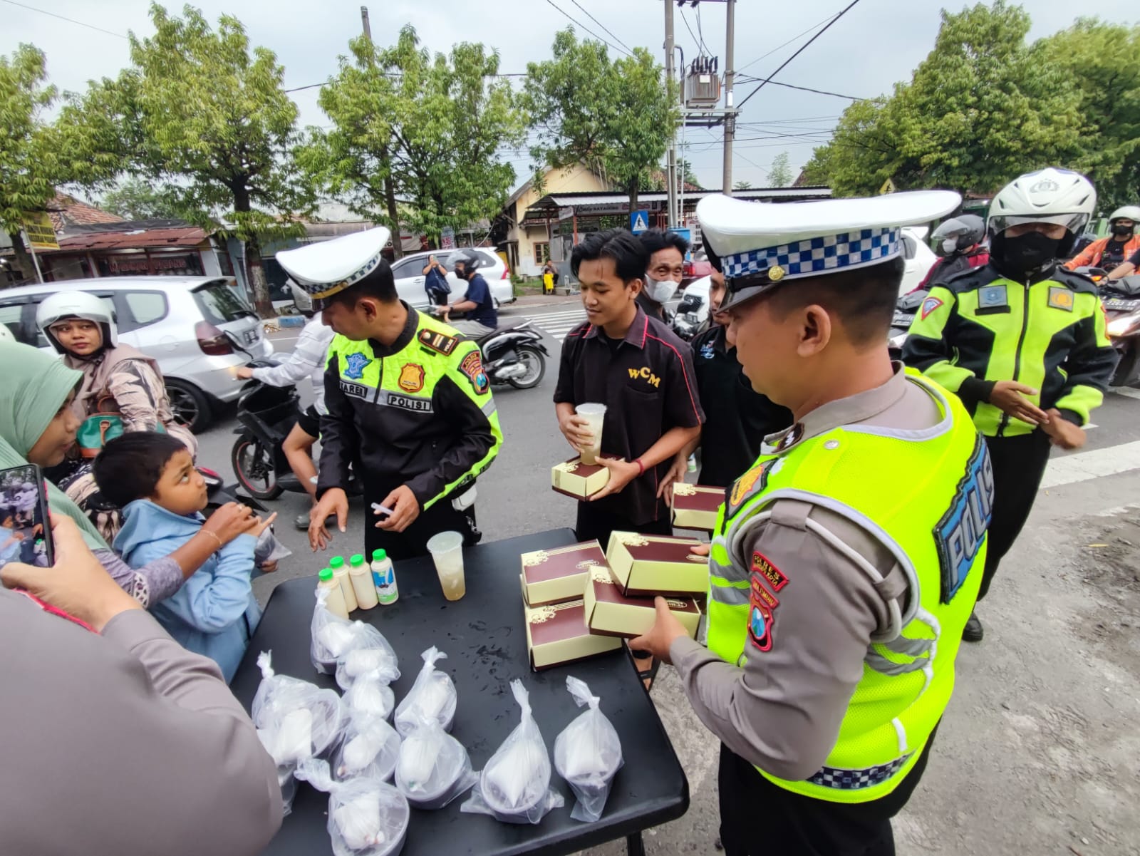 ”Kita hadir disini untuk berbagi takjil kepada pengendara, abang gojek maupun masyarakat sekitar, sekaligus untuk memberikan edukasi tentang keselamatan berlalu lintas” Kata AKP Budi