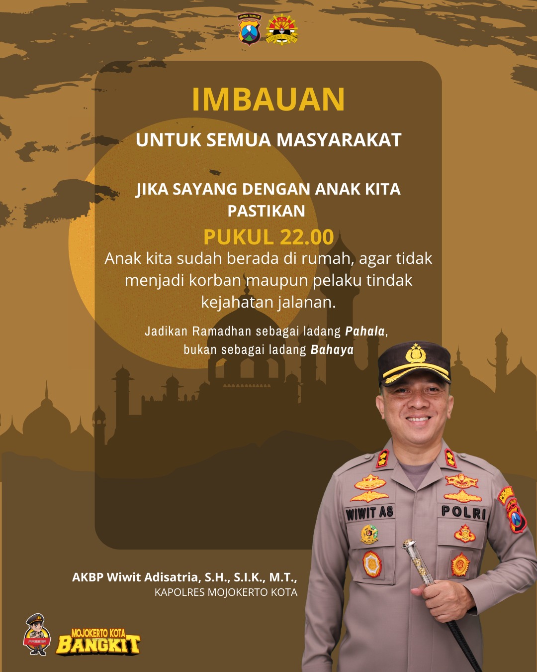 KOTA MOJOKERTO,JURNALDETIK.COM – Kepolisian Resor Mojokerto Kota mengimbau kepada seluruh masyarakay khususnya para orang tua untuk memastikan anak-anaknya sudah di rumah pada pukul 22.00 WIB.