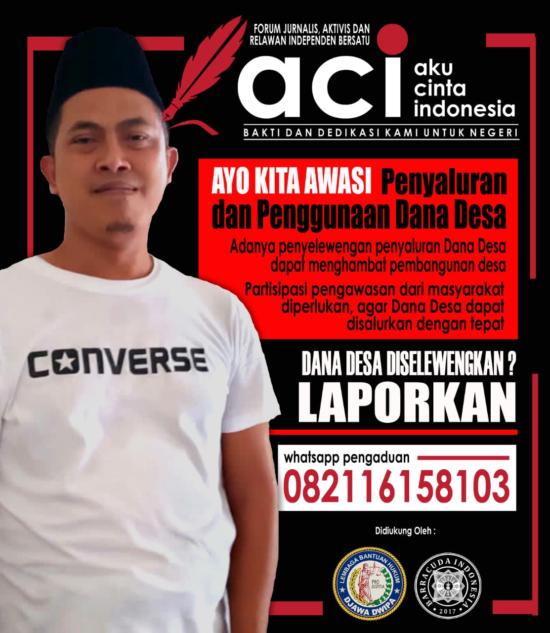 Seperti yang telah diberitakan sebelumya, Forum Organisasi ACI didirikan sebagai wadah bagi kawan-kawan yang berasal dari berbagai profesi mulai dari Masyarakat Umum, Relawan, Aktivis dan Pekerja Media (Jurnalis). Dengan mottonya “Bakti dan Dedikasi Kami Untuk Negeri) Kami juga siap menerima pengaduan terkait penyaluran dan pengunaan Dana Desa (DD) apa sudan sesuai dengan perencanaanya.