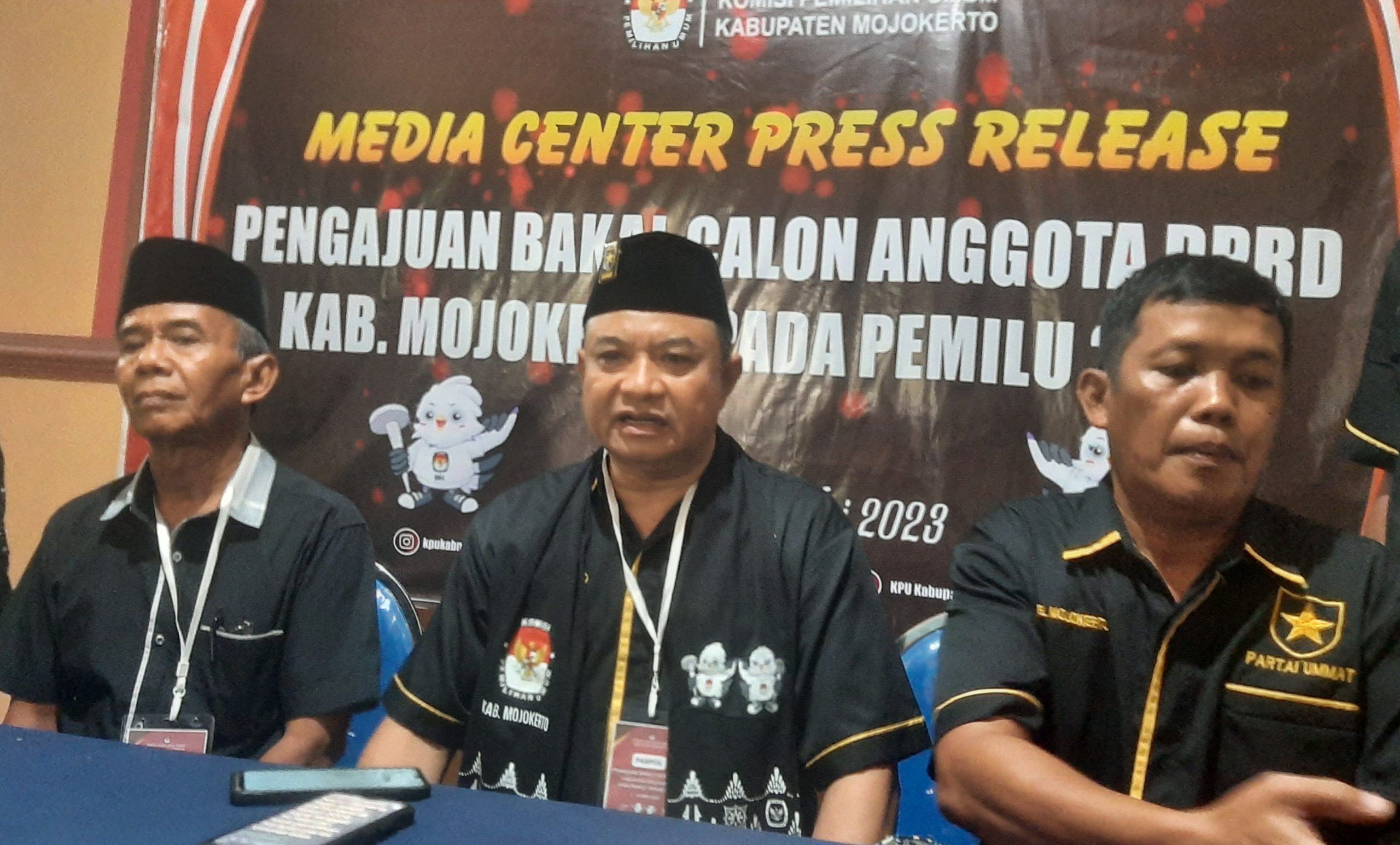 Hal tersebut disampaikan, Solamin Ketua DPD Partai Ummat kabupaten Mojokerto saat konferensi pers sehabis mendaftarkan 25 Bacalegnya di KPUD kabupaten Mojokerto pada hari Sabtu (12/5/2023) kemaren.