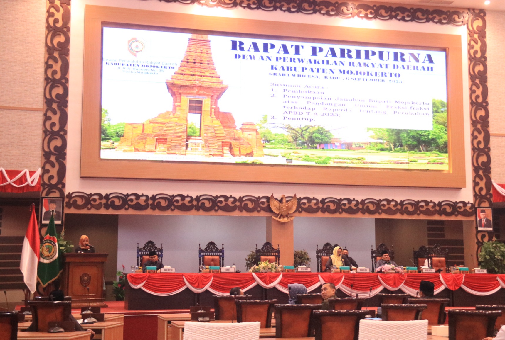 Rapat Paripurna yang dibuka oleh Ketua DPRD kabupaten Mojokerto Hj Ayni Zuroh, S.E, M.M tersebut hadiri Wakil bupati Mojokerto, Dr H. Muhammad Al Barra Lc, M.Hum, jajaran Forkopimda, Kepala OPD, Camat dan Anggota Dewan kabupaten Mojokerto