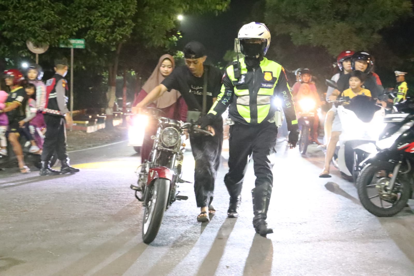 “Malam ini, akan kami laksanakan penindakan pada Knalpot Brong, menindak lanjuti aduan masyarakat saat Curhat Kamtibmas di wilayah Jetis bahwa masyarakat tidak nyaman dengan suara knalpot brong atau konvoi di wilayah Polres Mojokerto Kota,” Pungkas Kapolres Mojokerto Kota