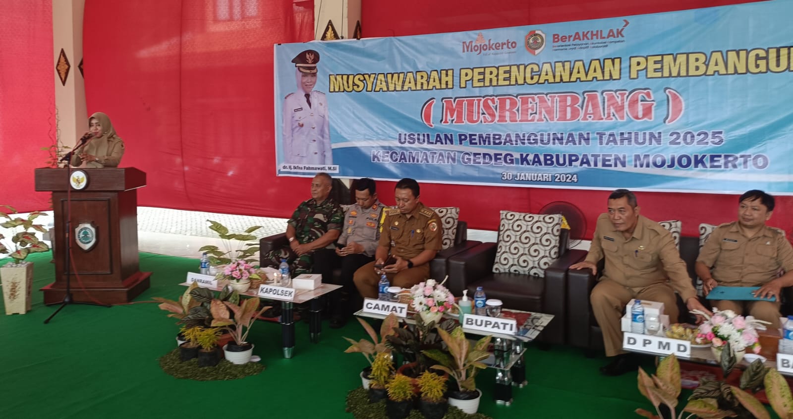 MOJOKERTO,JURNALDETIK.COM- Bupati Mojokerto dr Hj Ikfina Fahmawati, M.S.i menghadiri Musyawarah Perencanaan Pembangunan (Musrenbang) Kecamatan Gedeg di Pendopo kantor kecamatan Gedeg pada Selasa (30/1/2024)