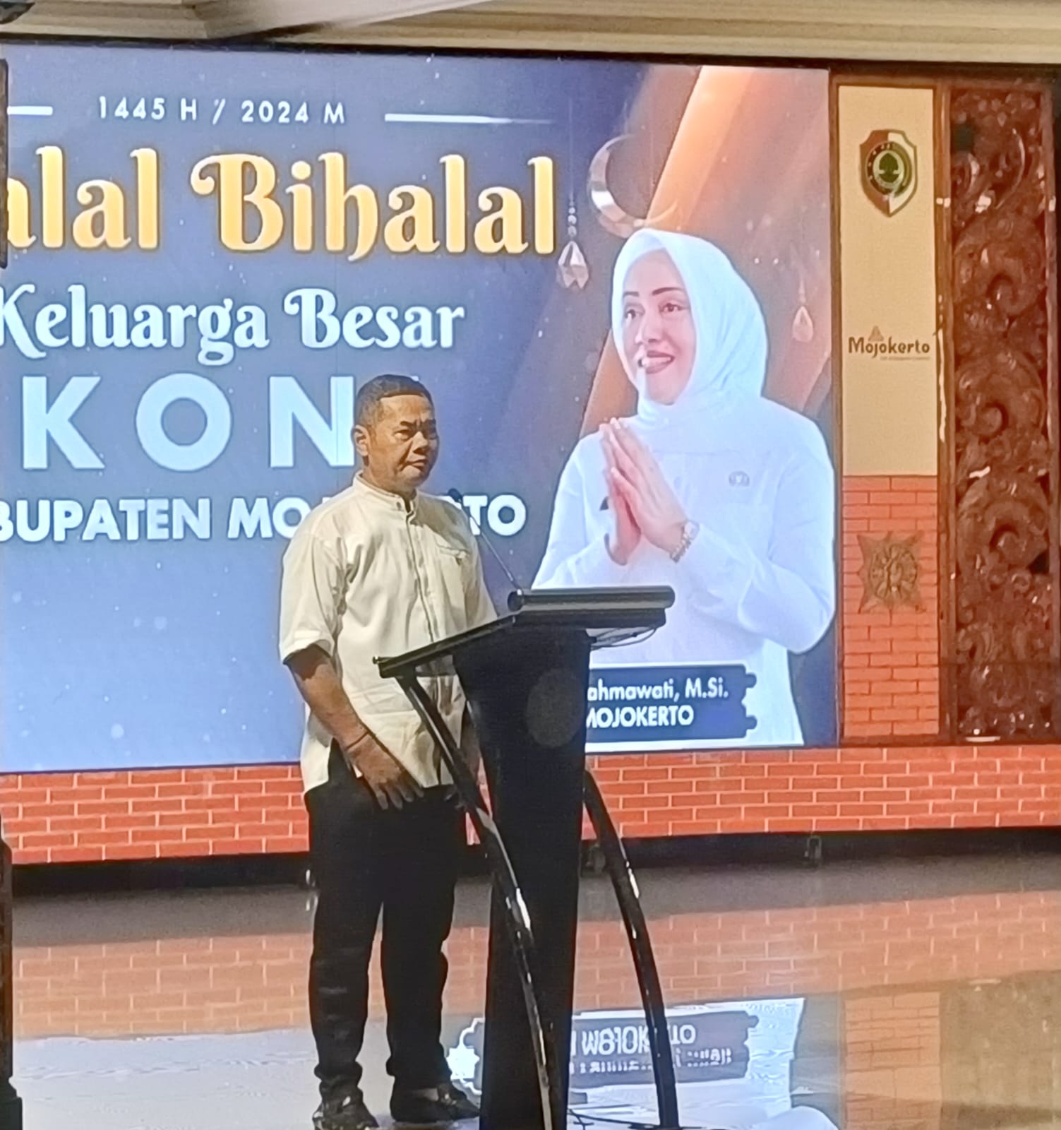 “Karena momennya Halal bihalal maka saya pribadi maupun atas nama pemkab Mojokerto menghaturkan minal aidzin wal Faidzin, dan mudah-mudahan Allah memberikan ampunan kepada kita semuanya sehingga kita betul-betul kembali bersih” ungkap bupati