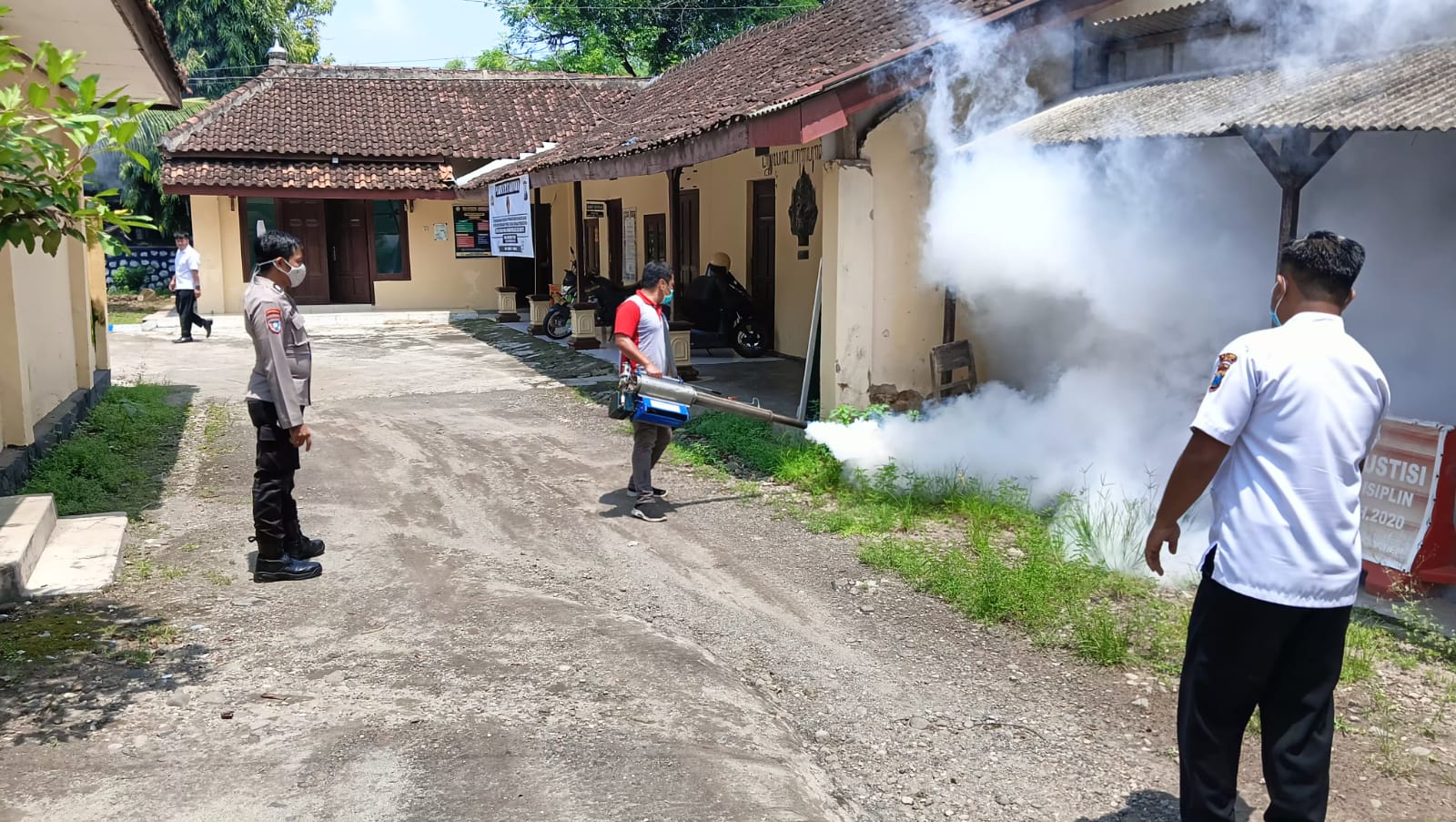 NGAWI,JURNALDETIK.COM – Memutus penyebaran wabah Demam Berdarah Dengue (DBD), seksi kedokteran dan kesehatan (Sidokkes) Polres Ngawi lakukan Fooging di lingkungan kantor Polres Ngawi.