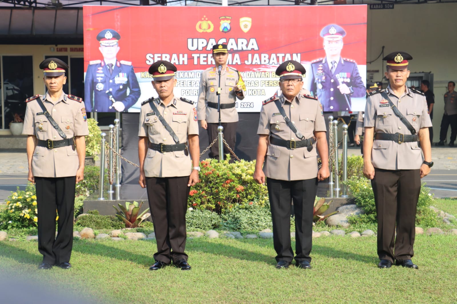 “Saya menyampaikan penghargaan dan apresiasi yang setinggi-tingginya kepada pejabat lama Kasat Intelkam AKP Pujiyono, dan juga Kapolsek Dawarblandong AKP Agus Sugiharto, atas segala dedikasi dan loyalitas serta pengabdiannya selama bertugas di Polres Mojokerto Kota” Ucap AKBP Daniel