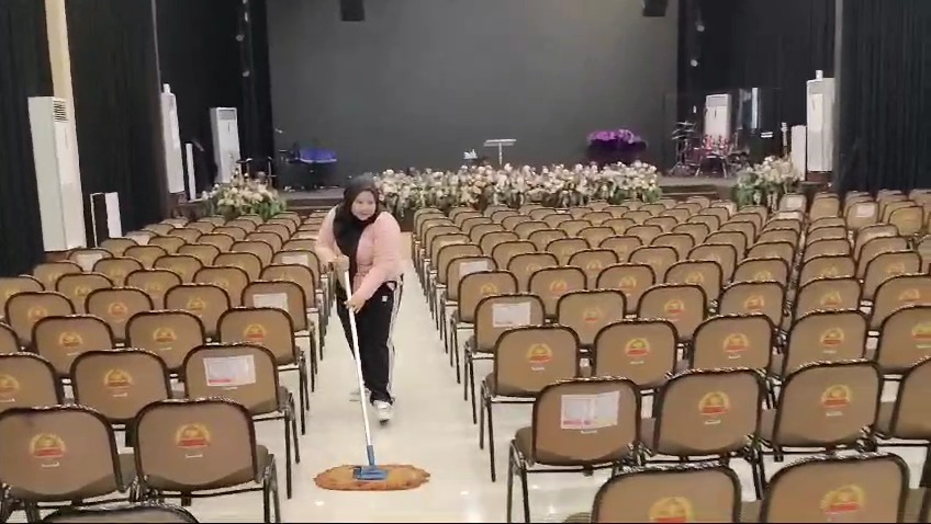 Dipimpin oleh Kanit Binkamsa Polres Mojokerto Kota IPDA Wahyuningsih serta berbekal sapu, alat pel dan alat kebersihan lain, anggota Polwan bahu membahu membersihkan tempat ibadah.