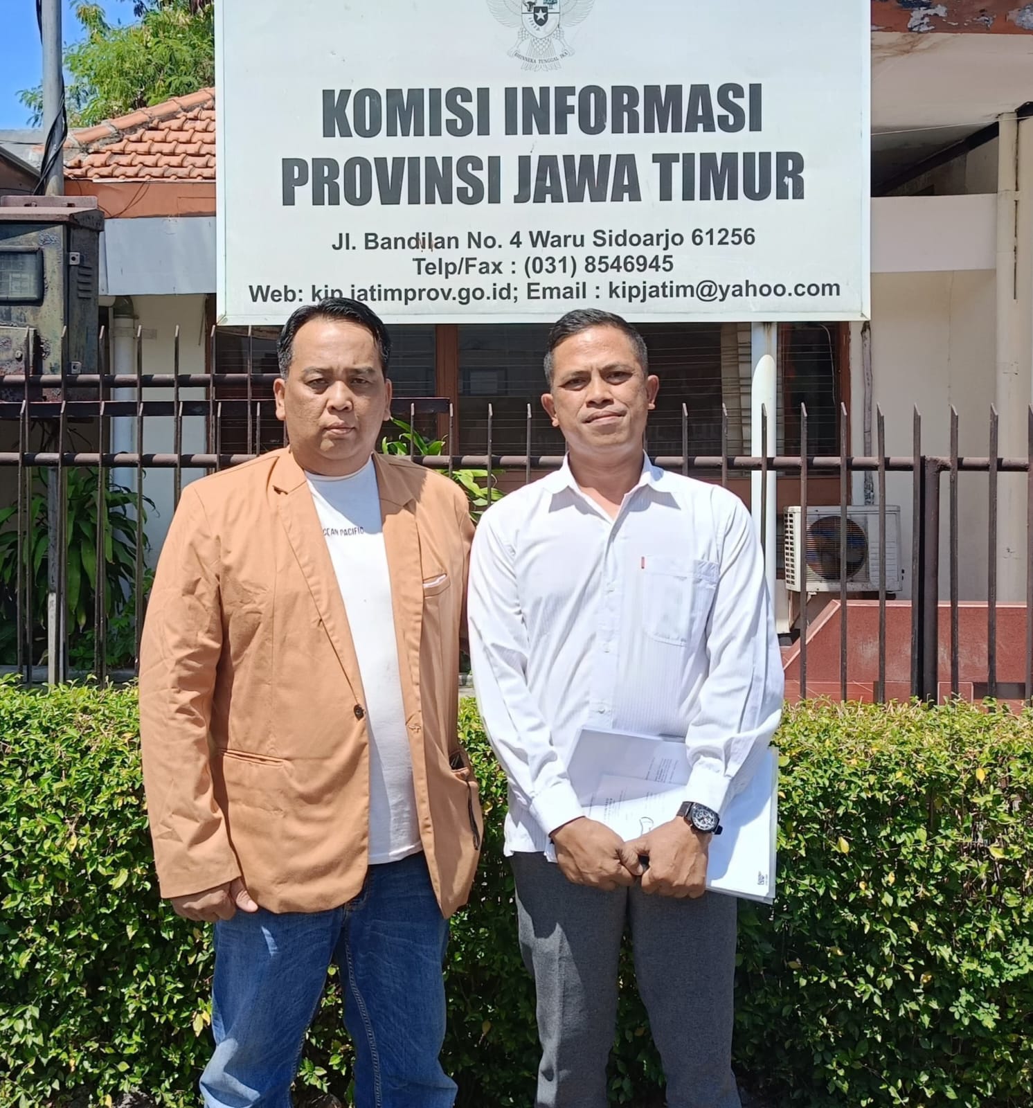 Kali ini yang menggugat Sunarko Utomo (46), didampingi Hadi Purwanto, tokoh pejuang keterbukaan informasi publik sekaligus founder LKH “Barracuda Indonesia” dan LBH “Djawa Dwipa” mengajukan gugatan atau permohonan penyelesaian sengketa informasi publik terhadap Pemerintah Desa Temon ke Komisi Informasi Provinsi (KIP) Jawa Timur pada Selasa Siang (27/8).