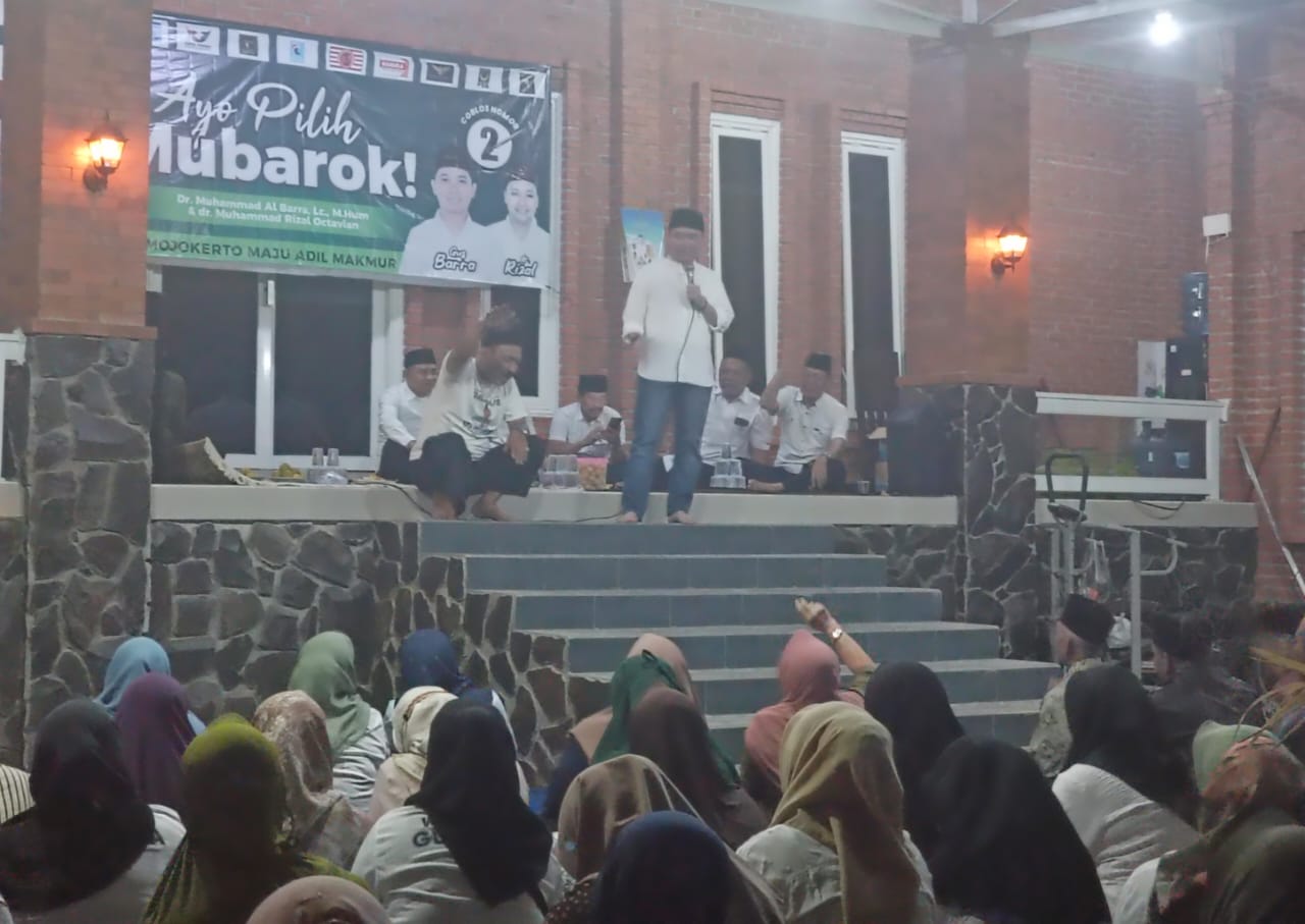 MOJOKERTO, JURNALDETIK.COM- Pasangan calon bupati dan wakil bupati Mojokerto, Dr Muhammad Al Barra Lc, M.hum dan dr. Muhammad Rizal Octavian (MUBAROK) menggelar kampanye di Lima desa di wilayah kecamatan Pacet, Mojokerto. Pada Kamis (3/10/2024)