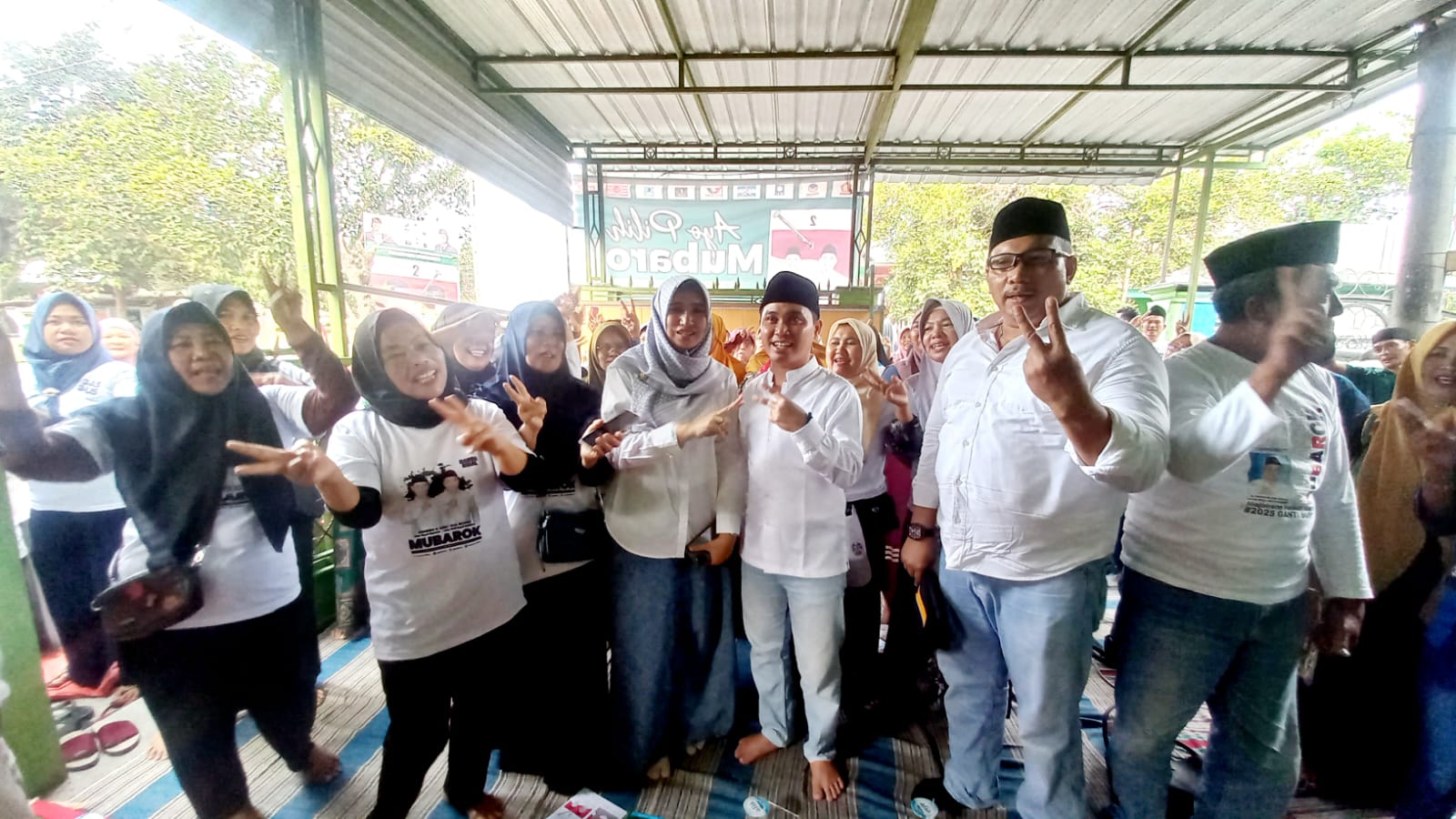 Gus Barra menyapa warga didampingi sang istri Shofiya Hanna Al Barra, Ayahanda Gus Barra Kiai Asep dan tim penenangan Mubarok.