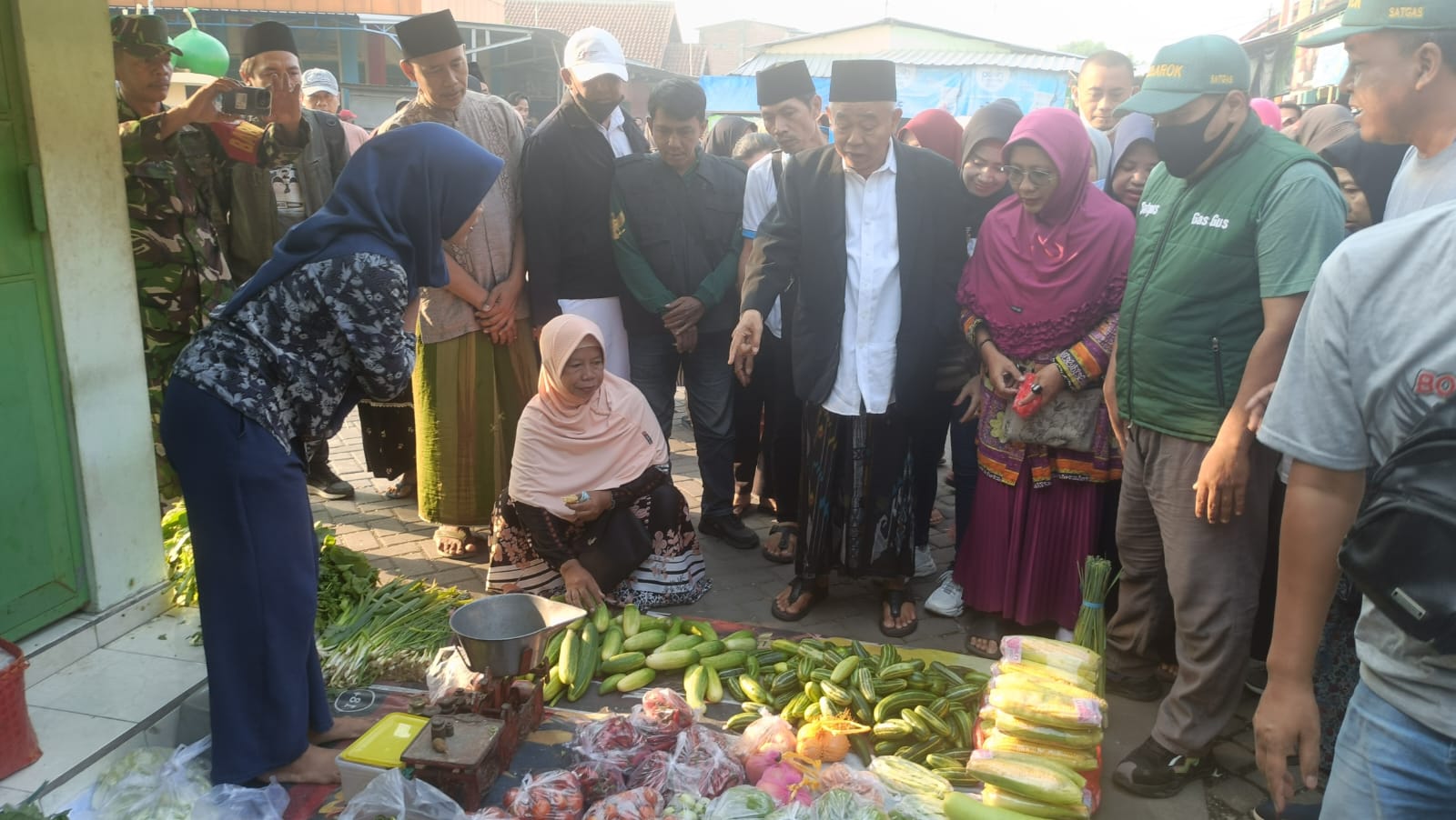 Dan sekitar pukul 6.30 rombongan KH Asep tiba, dan langsung di sambut suka cita oleh ratusan masyarakat dan langsung mengikuti KH Asep dan Nyai Asep yang menuju ke sejumlah pedagang di pasar Kedungmaling.
