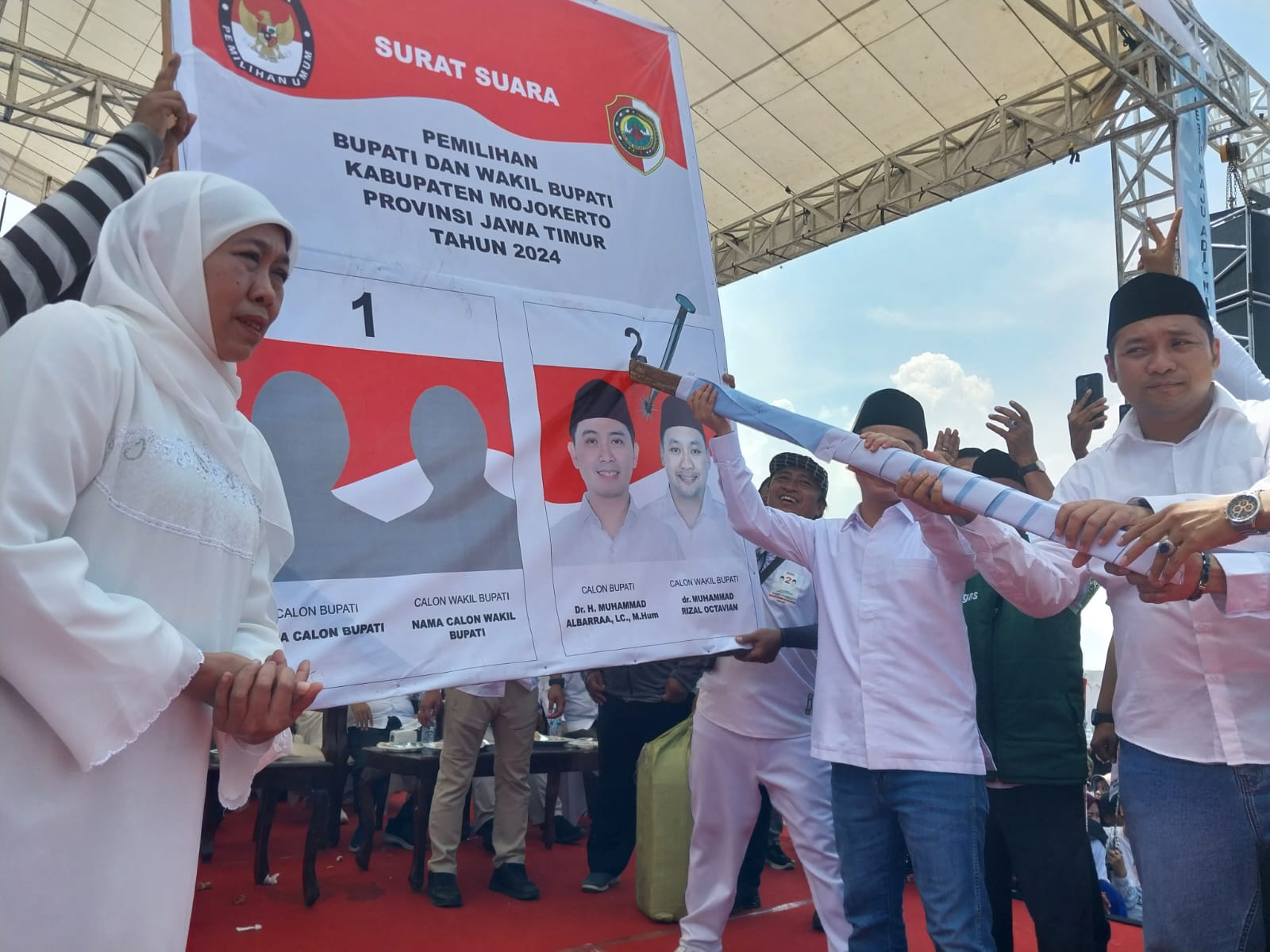 “Presidennya yang jadi No 02, jadi Gubernur dan Bupati Mojokerto juga harus No 02 Gus Barra” ujar Khofifah