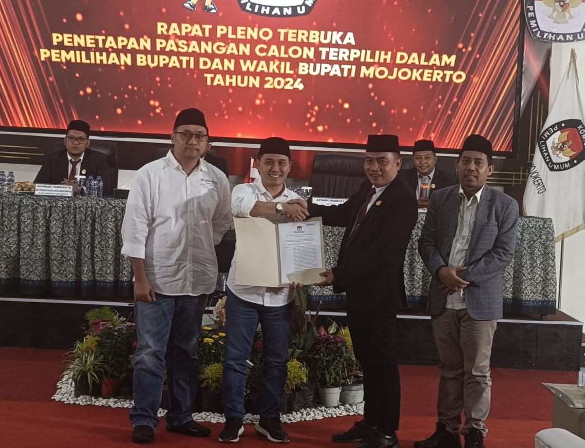 Dalam rapat pleno ini, Ketua KPU Kabupaten Mojokerto, Afnan Hidayat, secara resmi menetapkan pasangan Gus Barra dan dr. Rizal sebagai Bupati dan Wakil Bupati Mojokerto terpilih. Penetapan ini dilakukan setelah proses pemilihan yang berlangsung demokratis dan kondusif.