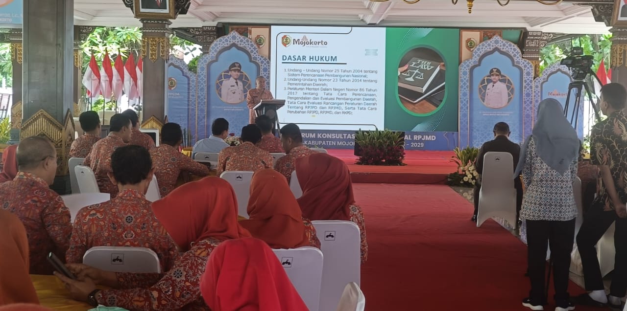 MOJOKERTO,JURNALDETIK.COM – Bupati Mojokerto, Muhammad Al Barra atau yang akrab disapa Gus Barra, secara resmi membuka kegiatan Forum Konsultasi Publik Rancangan Awal Rencana Pembangunan Jangka Menengah Daerah (RPJMD) Kabupaten Mojokerto 2024-2029. Acara ini berlangsung di pendopo Grha Maja Tama