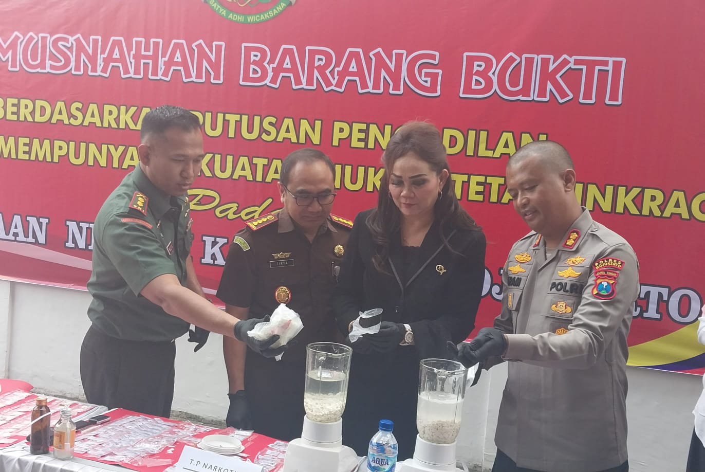 Dalam kegiatan tersebut, barang bukti yang dimusnahkan meliputi narkotika jenis sabu seberat 80,66 gram, 10.032 butir pil Double L, uang palsu senilai Rp196.250.000, 1.590 botol jamu tradisional, 50 pak kosmetik ilegal, serta 2 unit telepon genggam.