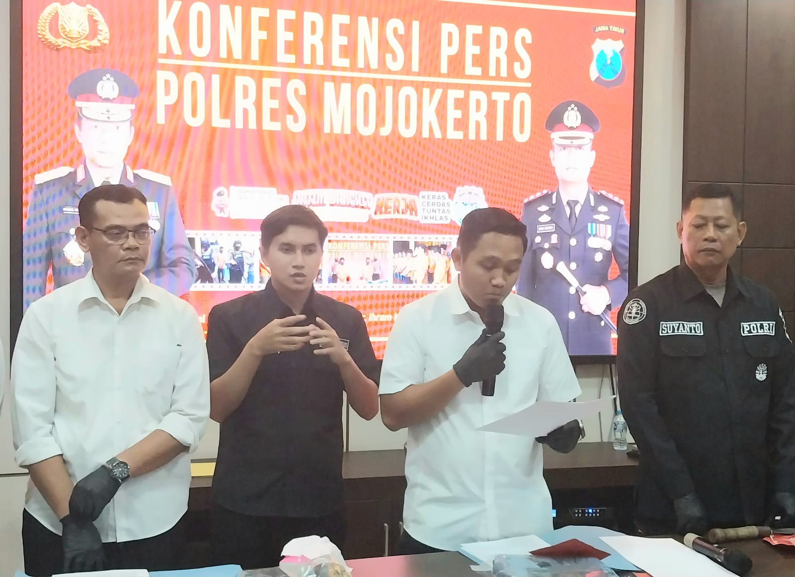 Dalam konferensi pers, Senin (16/6/2025), AKP Nova Indra Pratama selaku Kasat Reskrim Polres Mojokerto mewakili Kapolres Mojokerto AKBP Ihram Kustarto menyampaikan bahwa pihaknya telah menerima laporan korban dan saat ini kasus tersebut tengah diproses lebih lanjut.