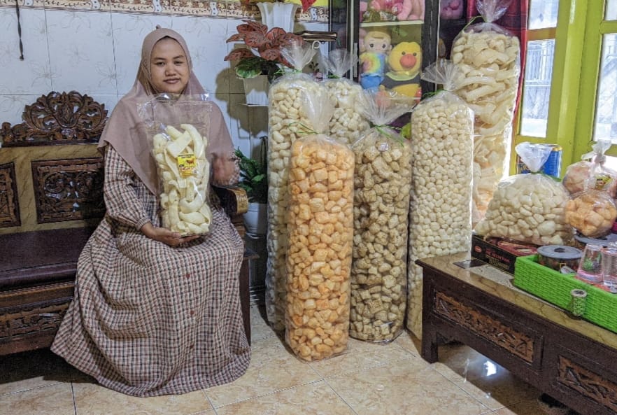 Kini, kerupuk rambak hasil produksinya hadir dalam bentuk siap konsumsi dengan berbagai varian rasa kekinian, seperti balado, pedas manis daun jeruk, hingga rasa original yang tetap digemari.