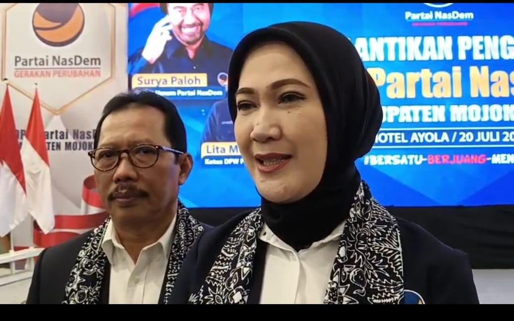 Ketua DPW Partai NasDem Jawa Timur, Lita Machfud Arifin, saat dikonfirmasi usai pelantikan pengurus DPD NasDem Kabupaten Mojokerto, menjelaskan pertimbangan partai dalam penunjukan nama baru sebagai Ketua DPD.