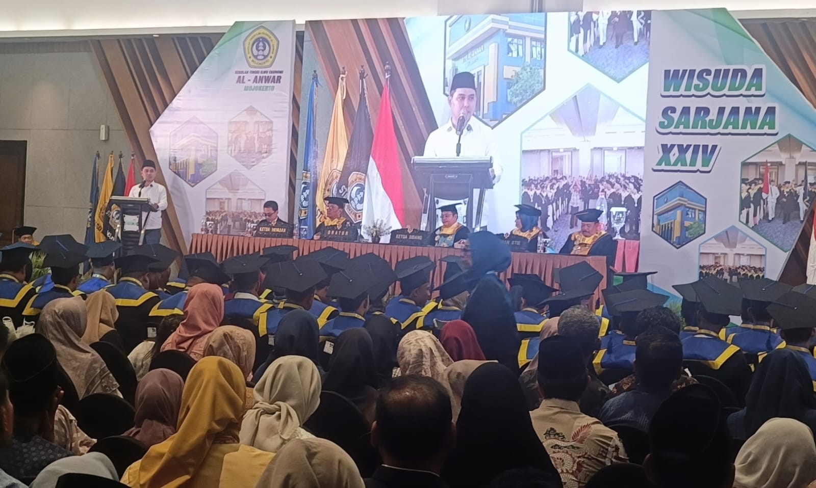 “Dalam meningkatkan SDM, pemerintah tidak bisa berjalan sendiri. Kami menggandeng berbagai perguruan tinggi, termasuk STIE Al-Anwar, melalui kerja sama beasiswa. Harapan kami, para lulusan mampu menjaga integritas, meningkatkan kompetensi, dan berkontribusi positif bagi masyarakat,” ujarnya.