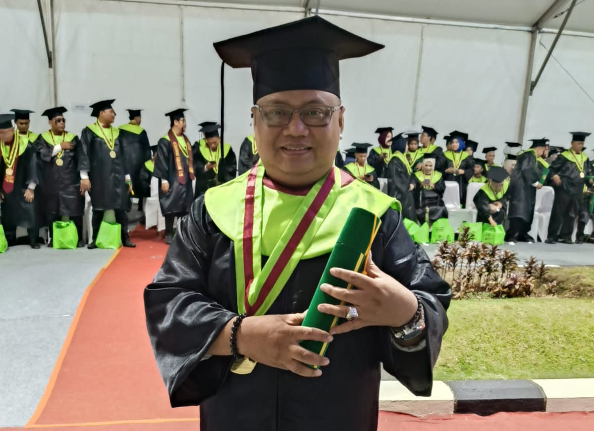 Sidang senat terbuka menjadi puncak acara setelah sebelumnya ia dinyatakan lulus yudisium berdasarkan SK Direktur Pascasarjana Nomor: 0072/170.PPS.07/IX/2025.