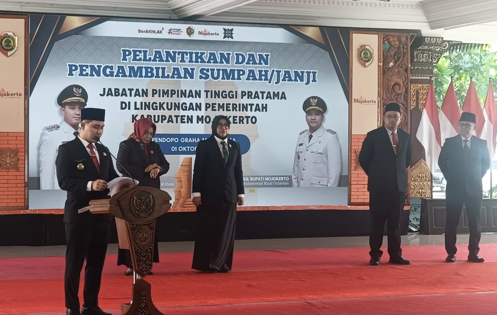 Pelantikan ditutup dengan doa bersama dan ucapan terima kasih dari Bupati kepada seluruh masyarakat Kabupaten Mojokerto yang terus mendukung terwujudnya pemerintahan yang bersih dan melayani.(Kar)