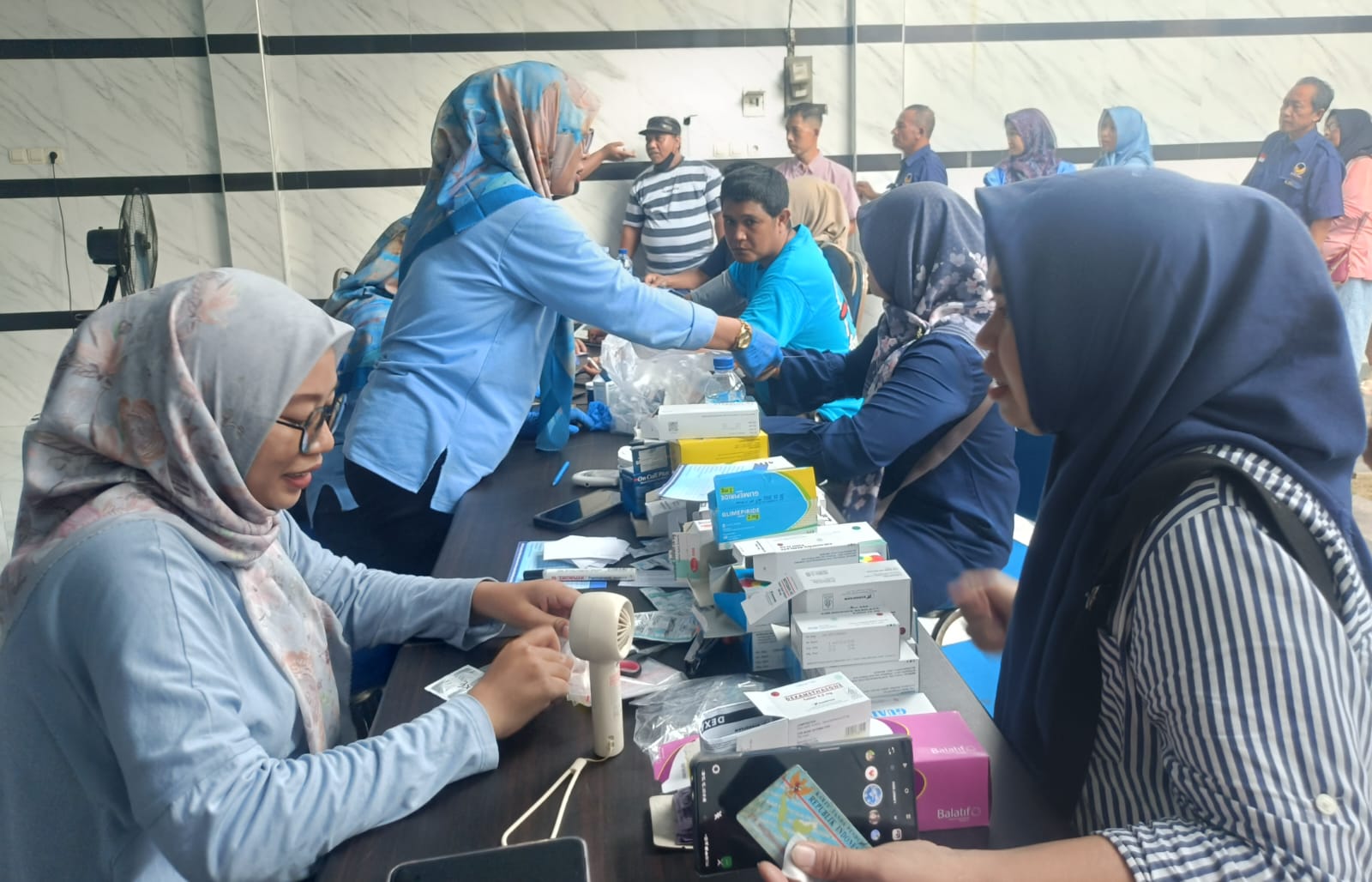 Selain pemeriksaan kesehatan, peserta juga menerima paket sembako berisi gula, minyak goreng, dan mi instan sebagai bentuk apresiasi dari panitia.