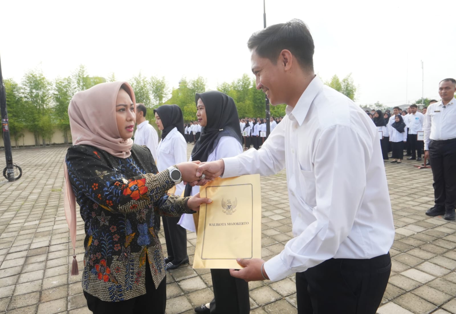 Ning Ita menambahkan, SK yang diterima para pegawai hendaknya menjadi pengingat untuk terus meningkatkan etos kerja, kedisiplinan, serta komitmen dalam menjalankan tugas. “Syukuri amanah ini dengan konsisten memberi kontribusi terbaik bagi Pemerintah Kota Mojokerto dan mendukung seluruh agenda pembangunan daerah,” katanya.