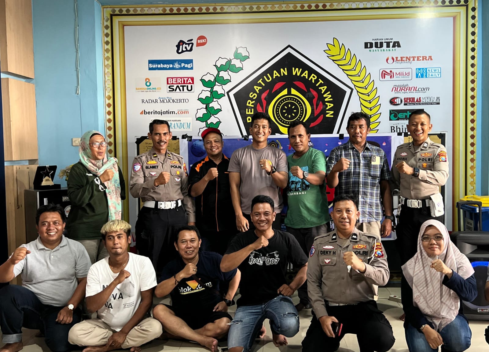 AKP Galih Yasir Mubaroq hadir bersama jajaran Pejabat Utama (PJU) Satlantas Polres Mojokerto Kota di Sekretariat PWI Mojokerto Raya yang berlokasi di Jalan Raya Pekayon, Kecamatan Kranggan, Kota Mojokerto.