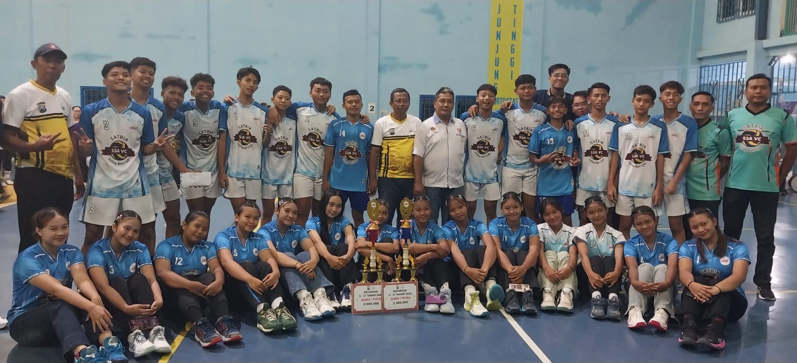 MOJOKERTO,JURNALDETIK.COM – Prestasi membanggakan ditorehkan Club bola voli Satria S3A VC asal Desa Kweden Kembar, Kecamatan Mojoanyar, Kabupaten Mojokerto. Pada ajang Kejuaraan Kabupaten (Kejurkab) Bola Voli U-17 Tahun 2026, tim putra dan putri Satria S3A VC sukses keluar sebagai juara pertama.