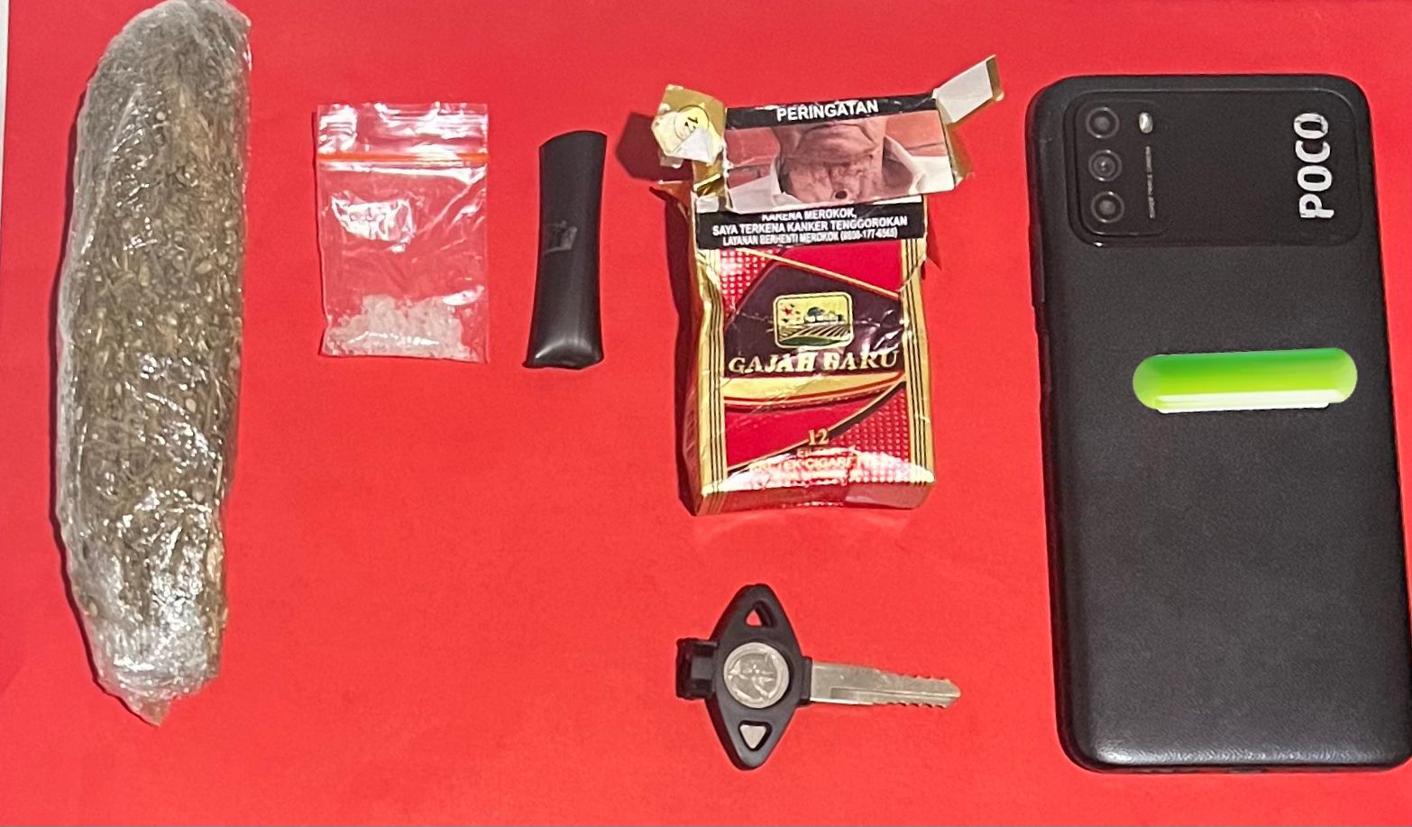 Dari tangan pelaku, polisi menyita sejumlah barang bukti berupa 32,19 gram ganja kering yang sudah dikemas dalam paket serta 0,83 gram sabu. Selain itu, turut diamankan barang lain seperti sedotan plastik, bungkus rokok bekas, satu unit telepon genggam, dan satu unit sepeda motor.