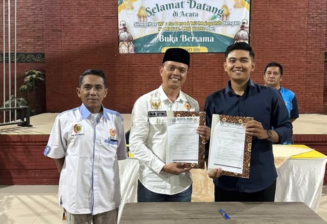 Penandatanganan kerja sama tersebut dilakukan saat acara buka puasa bersama pengurus KONI Kabupaten Mojokerto pada Sabtu, (14/3/2026).Nota kesepahaman ditandatangani langsung oleh Ketua KONI Kabupaten Mojokerto, Imam Suyono, dan Direktur Wisata Desa BMJ Mojopahit, Brahma.