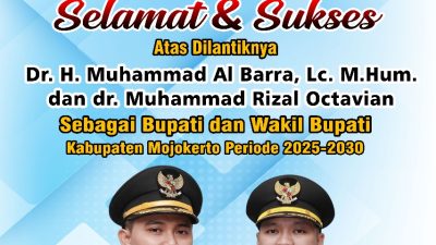 Ketua Tim Kemenangan MUBAROK Mengucapkan Selamat atas Dilantiknya Dr Muhammad Al Barra Lc M.Hum dan dr Muhammad Rizal Octavian sebagai Bupati dan Wakil Bupati Mojokerto Periode 2025-2030 pada 20 Februari 2025 Oleh Presiden RI Prabowo Subianto