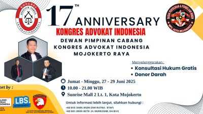 MOJOKERTO,JURNALDETIK.COM– Dalam rangka memperingati Hari Ulang Tahun ke-17 Kongres Advokat Indonesia (KAI), Dewan Pimpinan Cabang…
