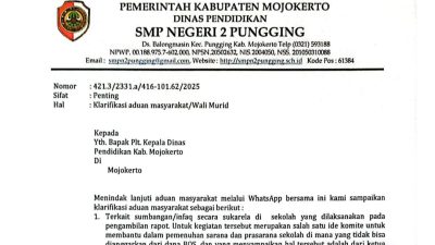 MOJOKERTO,JURNALDETIK.COM-Menyikapi adanya aduan masyarakat yang masuk melalui pesan WhatsApp terkait dugaan pungutan di SMPN 2…